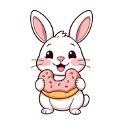 Instantly download and print this delightful artwork of a rabbit enjoying a donut. Perfect for adding a touch of sweetness and humor to any room.
